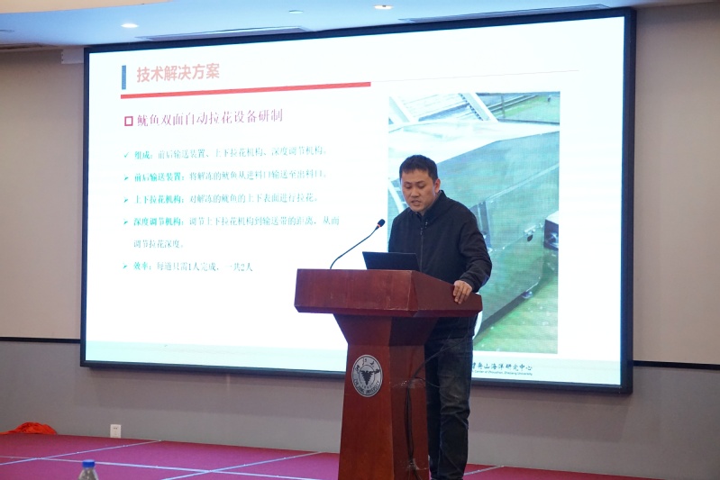 浙江大学舟山海洋研究中心在培训会上重点推介了自主研发的“鱿鱼智能切片机”及全流程配套设备。通过实景案例,中心生动展示了从原料到成品的全流程智能化生产线,为业界提供了一条经过验证的升级路径,有效提振了企业实施智能化改造的信心。