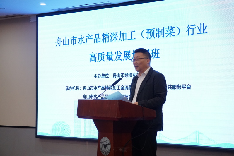 为深入推进全市水产品精深加工与预制菜产业提质增效,助力行业把握新机遇、应对新挑战,10月23-24日,由舟山市经济和信息化局主办、浙江大学舟山海洋研究中心承办的全市水产品精深加工(预制菜)行业高质量发展培训班顺利举办。来自我市政府部门、科研院所和水产品精深加工企业共计60余名学员参加本次培训,舟山市经济和信息化局党组副书记、副局长袁嵘出席开班仪式并致辞。