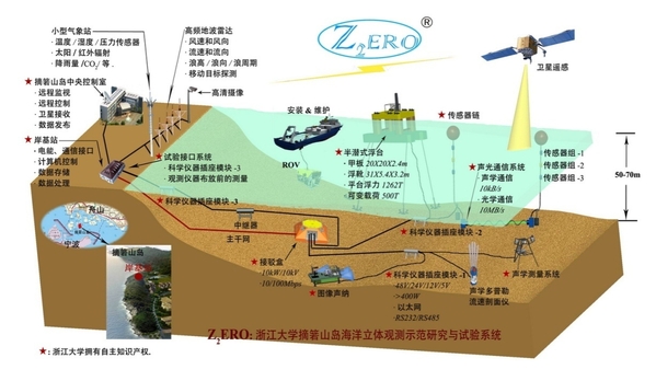 浙江大学海底有缆在线观测系统首次将两芯电缆电力信息混合传输技术应用于长距离、高带宽、实时传输海底监测数据,可实现海洋水文水质要素和水下高清视频的长期、连续、实时、在线、原位观测。系统已在海洋牧场、珊瑚礁区、河流入海口区、石油石化区、海洋观测站、科研实验区等应用场景应用100余套,覆盖我国80%沿海省市自治区,入选CCTV《崛起中国》栏目。
